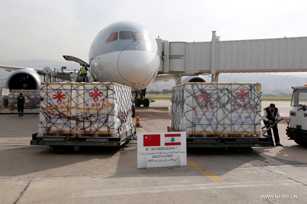 بيروت 29 نوفمبر 2021 (شينخوا) تسلم لبنان اليوم (الإثنين) هبة لقاحات ومعدات طبية من جمهورية الصين الشعبية تضمنت 300 ألف جرعة من اللقاح الصيني للمساعدة في مكافحة مرض فيروس كورونا الجديد (كوفيد-19) بالإضافة إلى 100 جهاز تنفس و 100 سرير مستشفى.