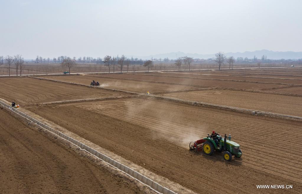 تونغشين 13 مارس 2022 (شينخوا) في الصورة الملتقطة يوم 11 مارس 2022، قيادة البذارة لزراعة القمح في قرية تشانغتان في محافظة تونغشين في مدينة ووتشونغ بمنطقة نينغشيا ذاتية الحكم لقومية هوي شمال غربي الصين، حيث من المتوقع أن تتجاوز مساحة زراعة القمح الربيعي لهذا العام بالمحافظة 60 ألف مو (نحو 4 ألاف هكتار).