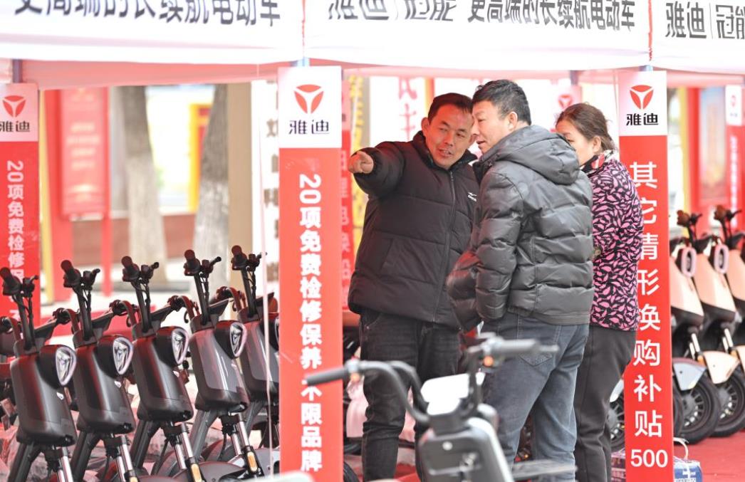 في الصورة الملتقطة يوم 28 مارس 2025، جانب من أنشطة خدمة السكان في إطار برنامج استبدال السلع الاستهلاكية القديمة بأخرى جديدة في حي بيتشن ببلدية تيانجين في شمالي الصين. (شينخوا)