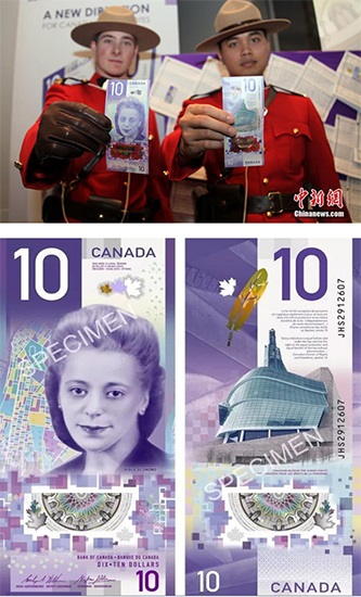 صحيفة الشعب اليومية أونلاين، أصدرت كندا ورقة نقدية جديدة من فئة 10 دولارات رسميًّا يوم 19. وتتميز هذه الورقة النقدية بتصميمها العمودي، كما تعتبر أول ورقة نقدية عمودية في كندا. وقال البنك المركزي الكندي إن هذا التصميم المميز سيجعل موضوع النقود الرئيسي أكثر بروزًا وسيساعد على تمييزها عن الأوراق النقدي الأخرى أيضًا.