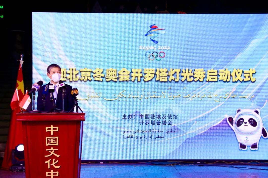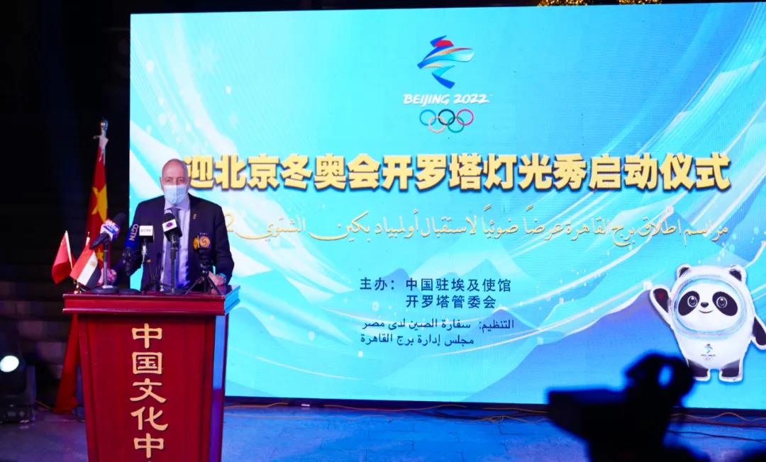 廖力强在致辞中表示,距离北京冬奥会开幕还有10天,中国已准备好向世界奉献一场简约、安全、精彩的奥运盛会。去年底埃及奥委会公开发帖支持中国举办冬奥会,今天开罗塔上演灯光秀,都充分体现了埃及人民对北京冬奥会的美好祝愿。