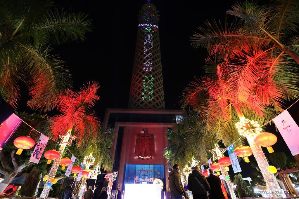 القاهرة 24 يناير 2022 (شينخوا) تزين برج القاهرة، أحد أبرز المعالم السياحية في العاصمة المصرية، اليوم (الاثنين) بشعار أولمبياد بكين الشتوية 2022، وذلك مع بدء العد التنازلي للأولمبياد.