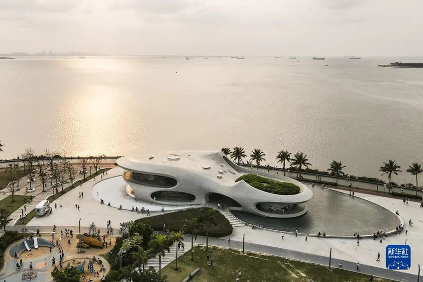 云洞图书馆是海南省海口湾标志性艺术建筑,由清水混凝土一体浇筑成型,包括可以藏书万本的阅读空间和多功能影音区,以及咖啡厅、母婴室、公共休息区、屋顶花园等配套设施,是市民游客阅读和休憩的理想场所。
