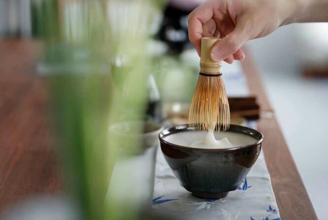 与唐代的泡茶方法不同,宋代盛行的喝茶方式是点茶。首先将热水倒在细密的茶粉上,调成糊状,然后慢慢加入更多热水,用茶筅不断击打,直到出现厚厚的泡沫。有人认为,这种方法后来传播到包括日本在内的东亚其他地区,与抹茶的制作方式十分相似。