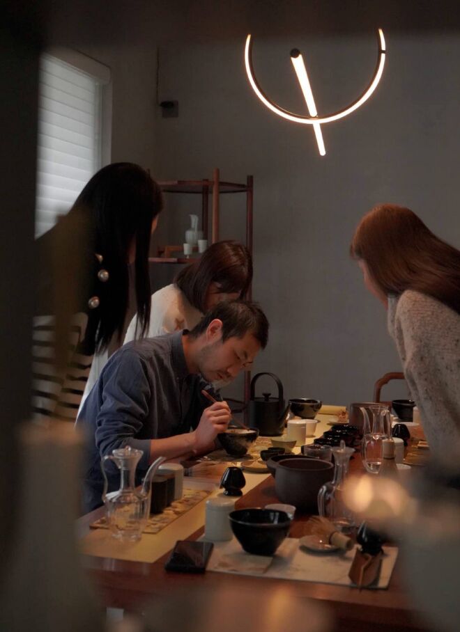 如今,咖啡拉花已经很常见,不过在茶汤上作画就鲜为人知了。韩喆明就是这门手艺的传承人,他学习并完善了这一艺术。中文里,这项艺术被称作“点茶”,曾是宋代(960-1279)的一项仪式。在过去六年的时间里,40岁的上海设计师韩喆明使用茶粉和茶勺,在茶汤上勾勒了近200幅古画。
