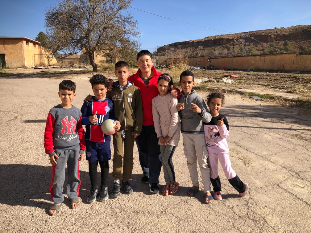 في الصورة الملتقطة يوم 21 ديسمبر عام 2021 والمقدمة من البعثة الطبية الصينية إلى الجزائر، طبيبة صينية ضمن البعثة (في الوسط) تأخذ صورة مع الأطفال المحليين في ولاية سعيدة بالجزائر.