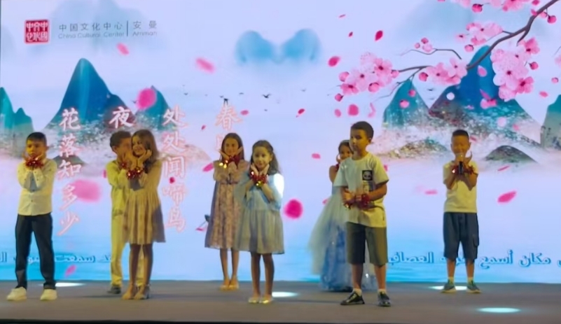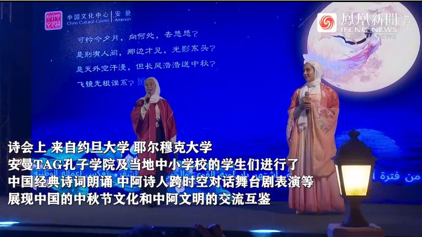 诗会上,来自约旦大学、耶尔穆克大学、安曼TAG孔子学院及当地中小学校的学生们进行了中国经典诗词朗诵、中阿诗人跨时空对话舞台剧表演等,展现中国的中秋节文化和中阿文明的交流互鉴。