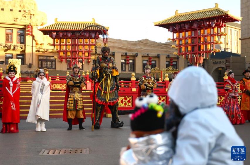 ينتشوان 26 نوفمبر 2024 (شينخوا) في الصورة الملتقطة يوم 25 نوفمبر 2024، عرض مسرحي يقام في حي "شيشيا" في مدينة ينتشوان بمنطقة نينغشيا ذاتية الحكم لقومية هوي في شمال غربي الصين. وتعد بلدة الفنون المسرحية الغامرة، والمعروفة أيضا بمدينة "مانبو"، منتجعا سياحيا يجذب الزوار بثقافته الفريدة في جبال "خهلان".