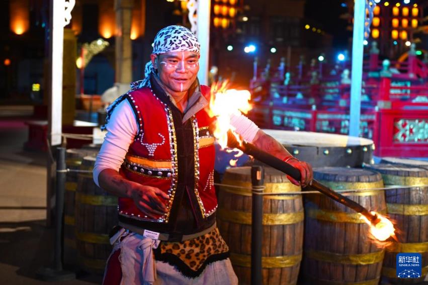 漫葡·看见贺兰沉浸式演艺小镇位于宁夏银川市西夏区,是集观光休闲、文化体验和康养度假为一体的综合特色文化旅游小镇。漫葡小镇入选第一批国家级夜间文化和旅游消费集聚区,以独特多元的贺兰山文化吸引各地游客前来参观体验。新华社记者 毛竹 摄