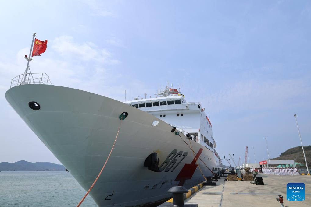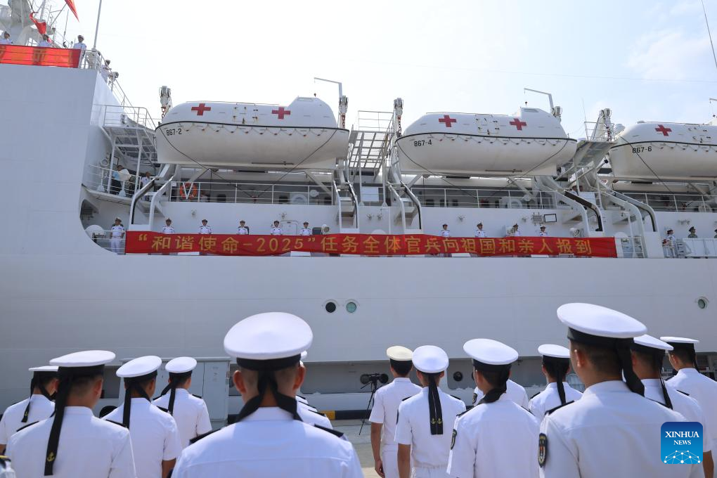 “丝路方舟”号医院船于2025年9月5日从福建泉州解缆起航,先后访问瑙鲁、斐济、汤加、牙买加、巴巴多斯、巴布亚新几内亚并提供医疗服务,访问巴西、智利并开展医学交流,技术停靠尼加拉瓜、乌拉圭等国。