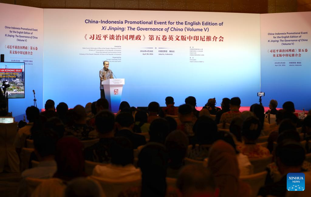 جاكرتا 28 أبريل 2026 (شينخوا) أُقيمت فعالية ترويجية للنسخة الإنجليزية من المجلد الخامس من كتاب "شي جين بينغ: حوكمة الصين"، هنا اليوم (الثلاثاء).